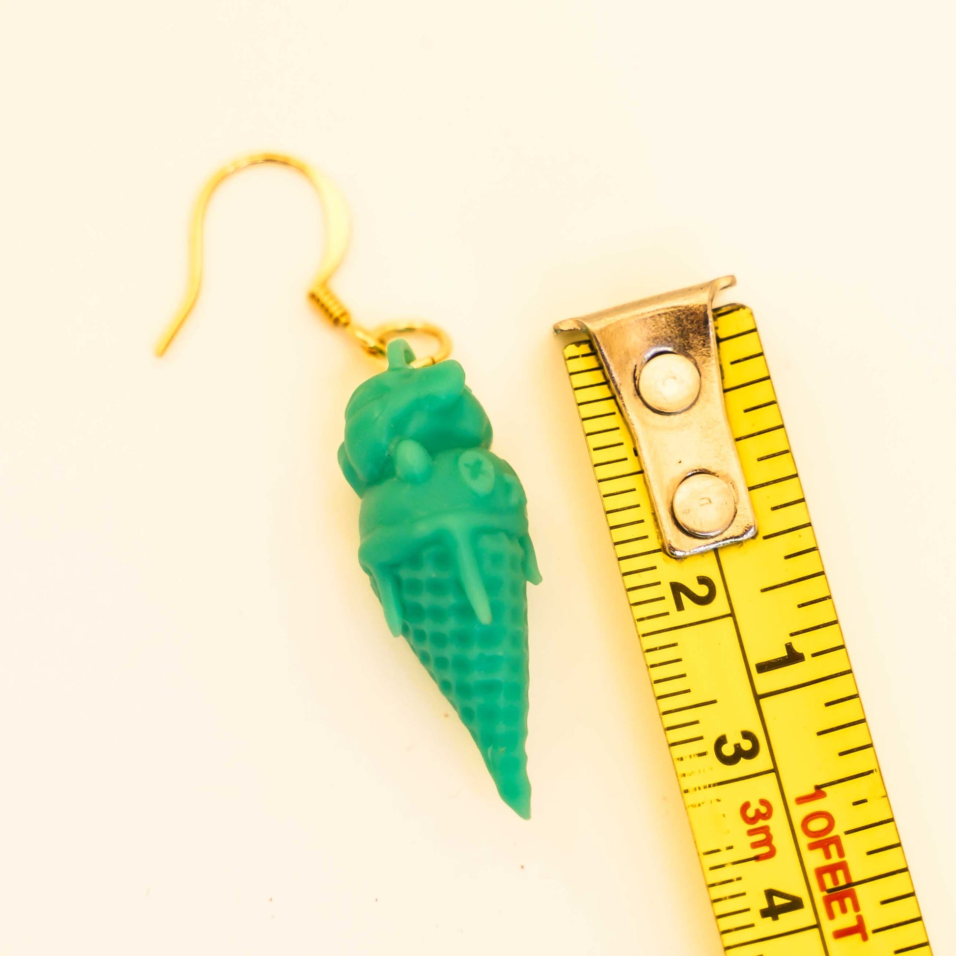 the ice cream cone is roughtly 3cm long, hook almost 1 cm. (so roughly 4cm long altogether).